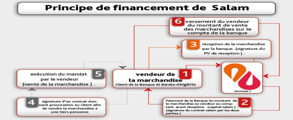 Le Salam peut être défini comme un contrat de vente avec livraison différée de la marchandise. Ainsi, contrairement à la Mourabaha, la Banque n’intervient pas comme vendeur à crédit de la marchandise acquise sur commande de sa relation, mais comme acquéreur, avec paiement comptant d’une marchandise qui lui sera livrée à terme par son partenaire.